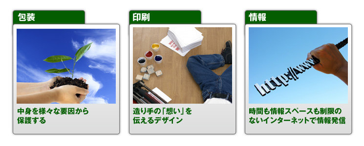 「ポリ袋」、「包装フィルム」、「容器」、「ダンボール箱」等の包装にも「想い」を伝わるデザイン、情報発信をしたいと考えております。
